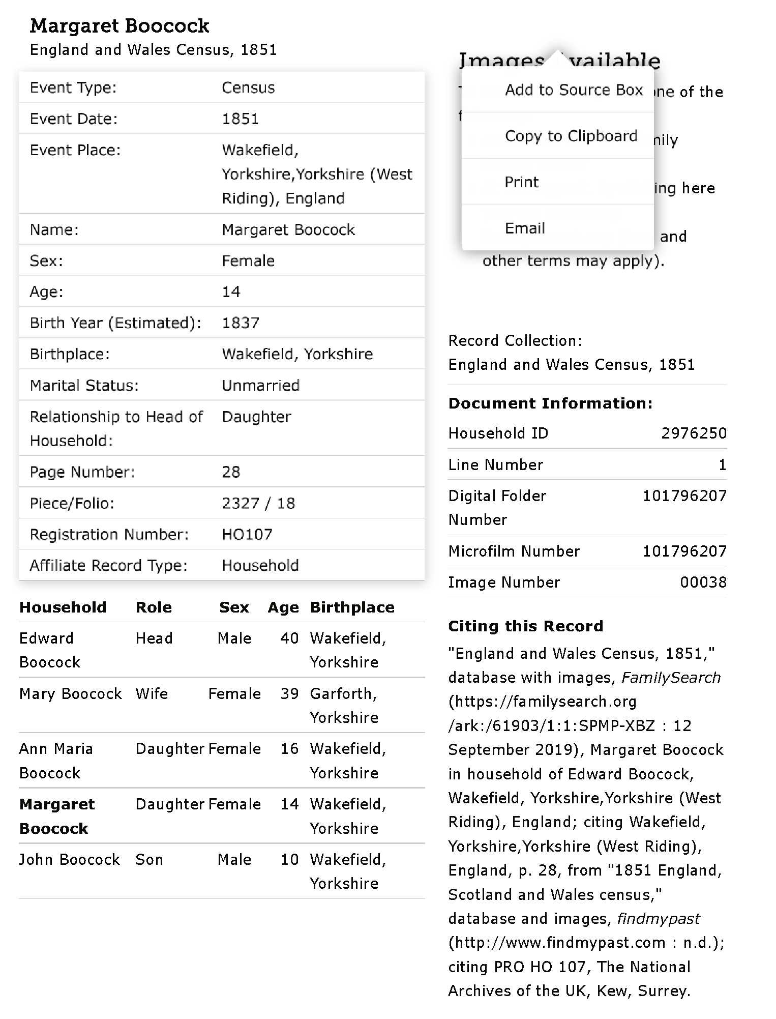Margaret Boocock England and Wales 1851
