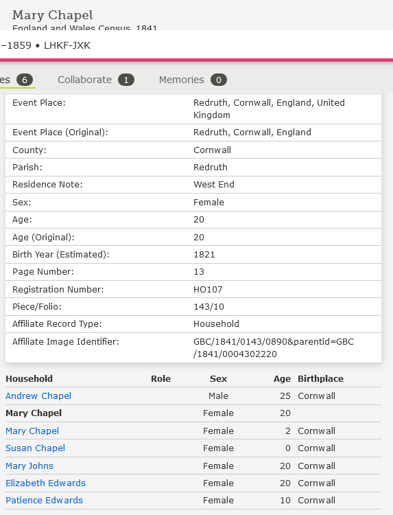 Mary Wedlake 1841